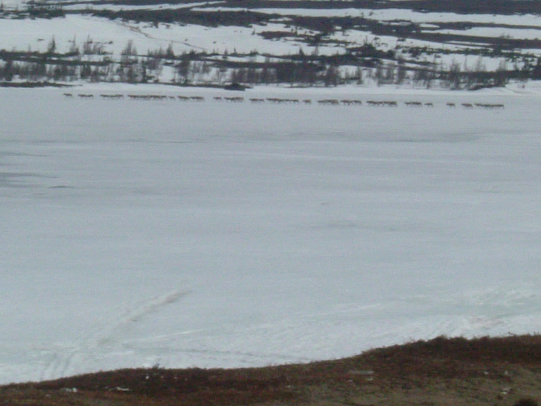 Caribou crossing Ashuapun. Photo courtesy Manishan Edmunds.