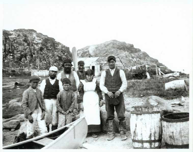 William Edmunds family at their home on the peninsula on the south side of the delta at the mouth of Nutakuanan-shipu. Photo courtesy Stephen Loring and the National Anthropological Archives, Smithsonian Institution.