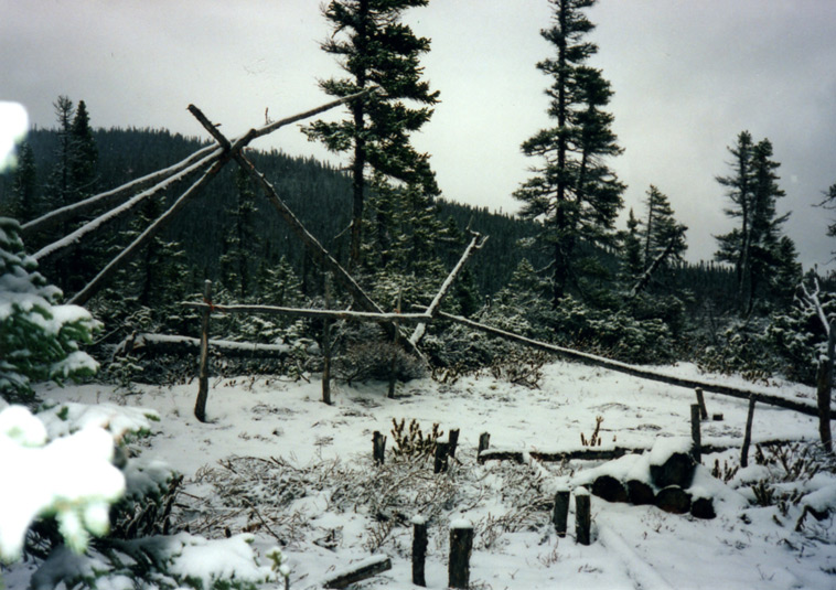 Tent poles at Ishpashtien and Taniana Benuen's camp at Mishta-nipi. Photo courtesy Gerry Penney.