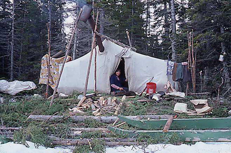Marian (Nuke) Montague at her camp at Ashtunekamiku. Photo courtesy Janet Kergoat.
