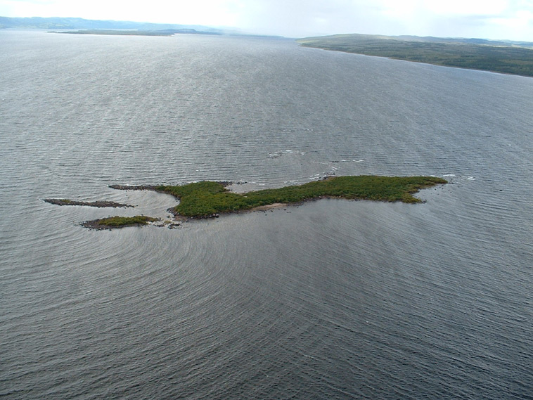 This is the island where Tshishkuetutsheunnu hid from Atshen. Photo courtesy Roland Butler.