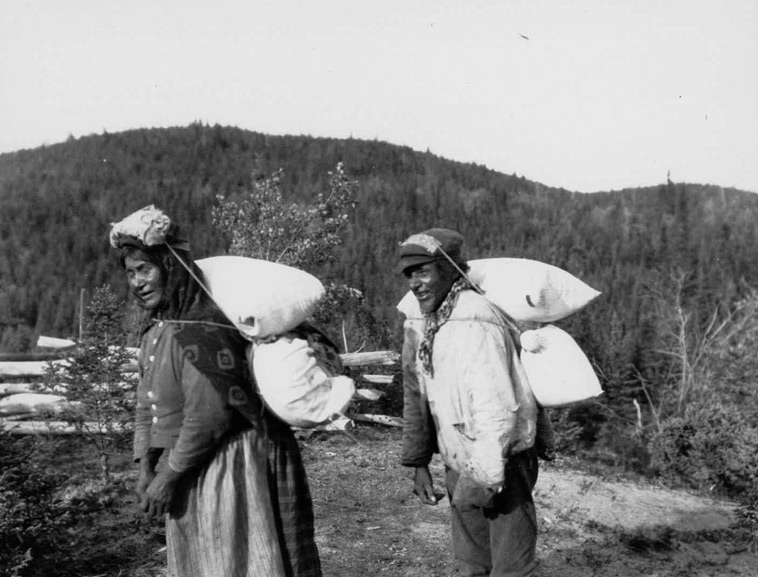 Shushep Tshishennish and his wife, Natamishkanukueu, at Amatshuatakn. Shushep Tshishennish is buried at this location on Ashtunekamiku. Photo courtesy Stephen Loring and the National Anthropological Archives, Smithsonian Institution.