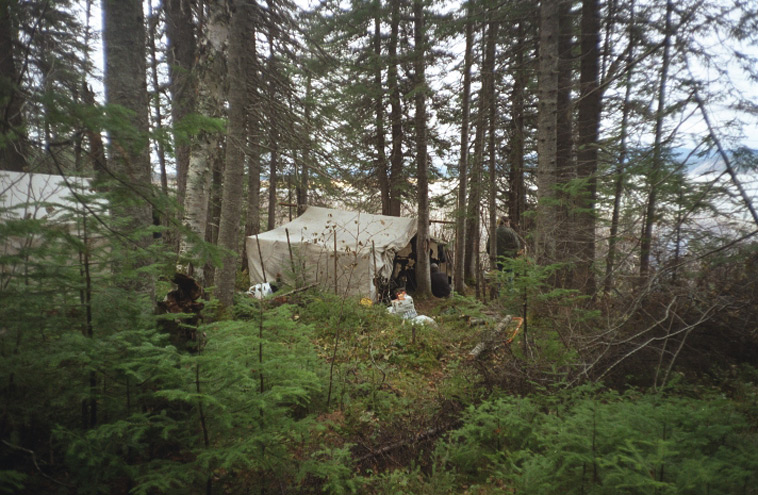 Ushkan-shipiss. Gathering place to share stories about the last kushapatshikan which was held at this location in Nov. 1969 by Uatshitshish. Photo courtesy Peter Armitage.