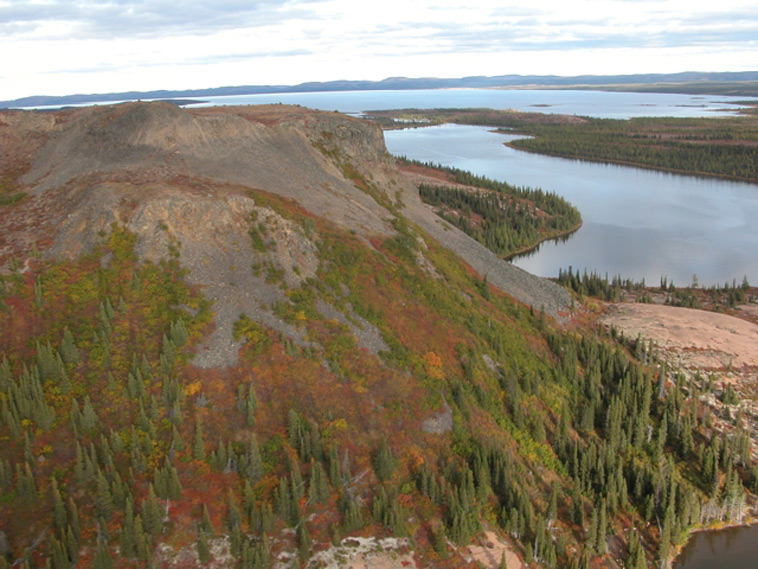Kameshtashtan mountain, backside, view to the east down the lake. Photo courtesy Stephen Loring.